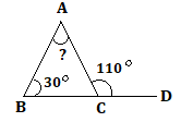 किसी त्रिभुज ABC में ∠BAC का मान क्या होगा , जिसमें ∠B = 30° और ∠ACD = 110° है ?